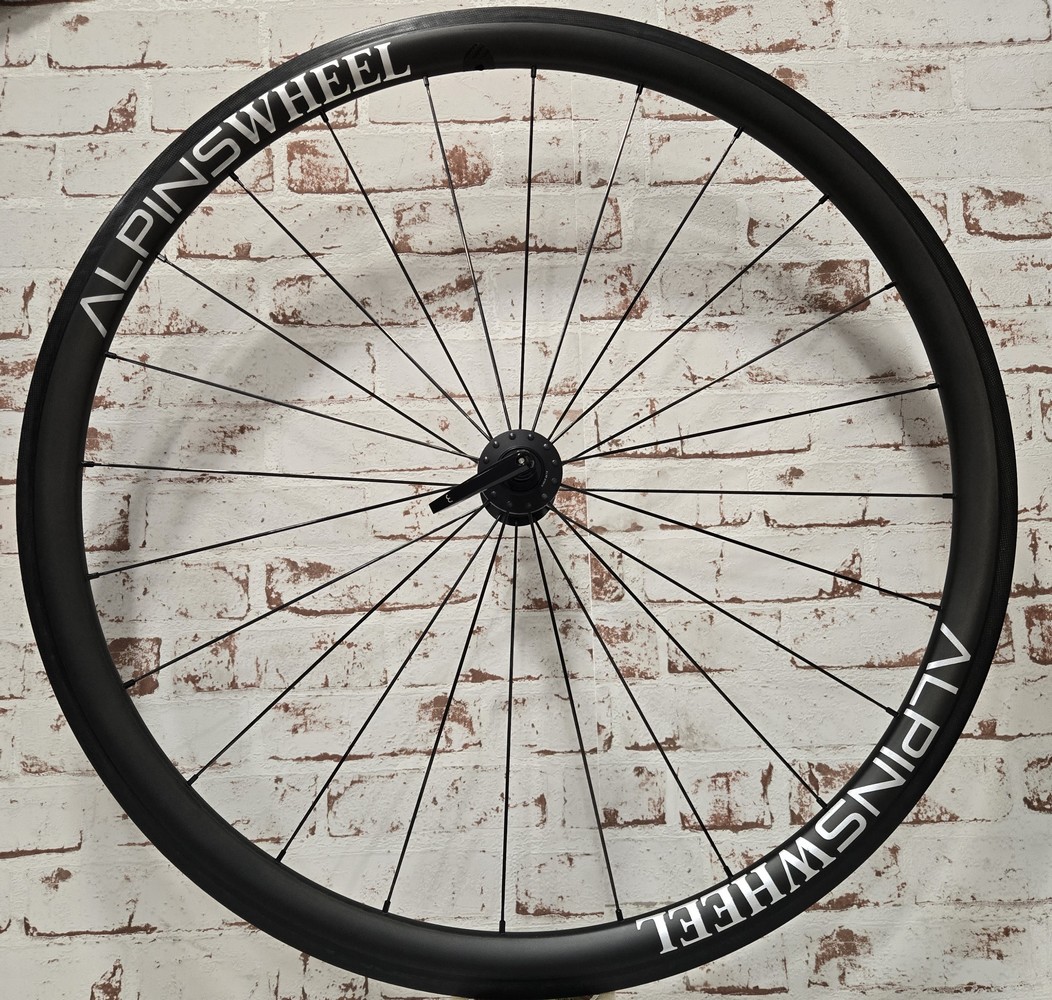 Très belle paire de roues carbone 35mm super-light pour vélo de route à freinage patins.